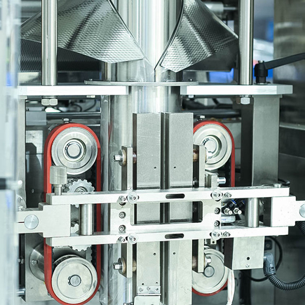 7、切刀封口環(huán)節(jié):采用旋轉(zhuǎn)轉(zhuǎn)動(dòng)恒溫?zé)崆锌冢瑢?duì)包裝產(chǎn)品前后兩端進(jìn)行封口,搭配插角裝置,袋型更加美觀,有效避免封口位置出現(xiàn)卷邊。